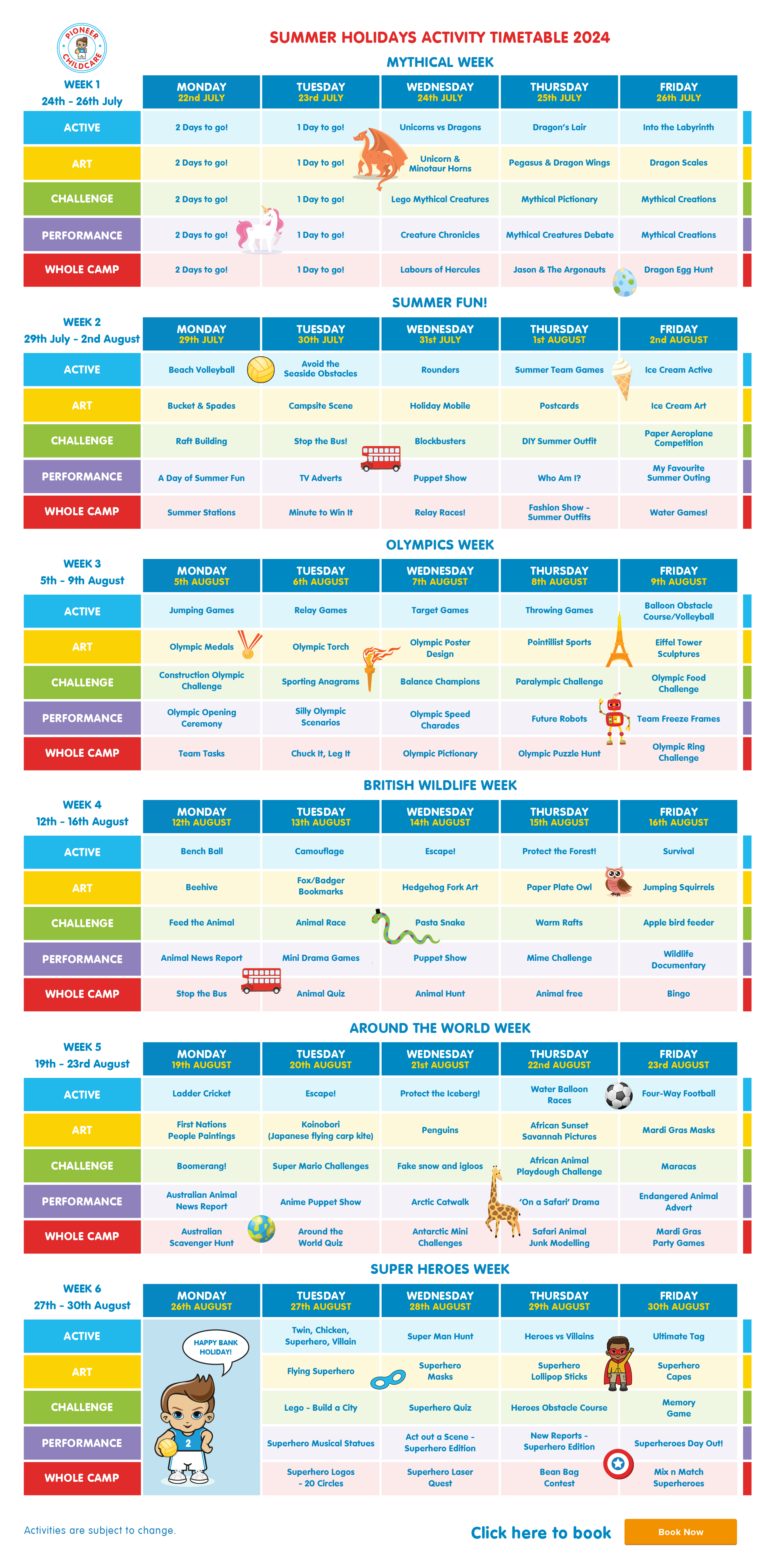 Drop off / Pick up information: At the Pioneer Childcare Holiday Camp entrance.
